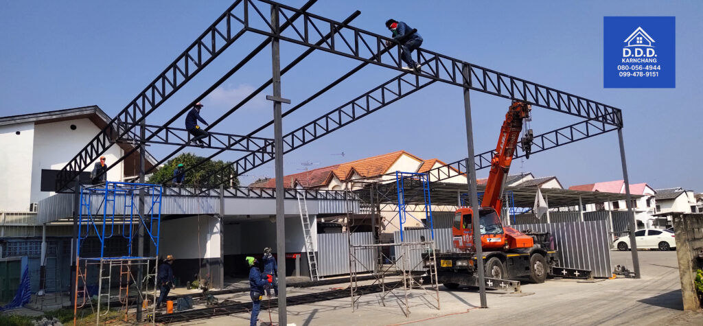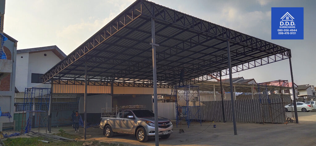 ช่างหลังคาครบวงจร ติดตั้งโครงเหล็ก โครงสแตนเลส รับทำโรงจอดรถ ต่อเติมหลังคา ซ่อมหลังคารั่วซึม เปลี่ยนแผ่นหลังคา งานมุงทับหลังคาเดิม งานกระจกอลูมิเนียม